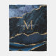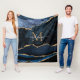 Monogram Name Agate Navy Blue Gold Gemstone Marble Fleece Blanket
