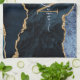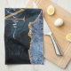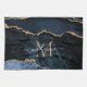 Monogram Name Agate Navy Blue Gold Gemstone Marble Tea Towel