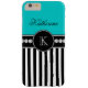Monogram Name Aqua Black Striped Pattern Case-Mate iPhone Case