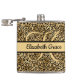 Monogram name Black and gold leopard print, animal print, cheetah print flask. See our black and gold leopard print collection for matching products.