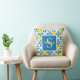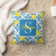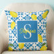 Monogram Name Blue French Tile Lemon Pattern Cushion