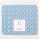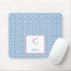 Monogram Name Blue Hearts & White Dots Pattern Mouse Pad