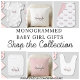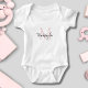 This baby girl's bodysuit features an elegant monogram and name in black and blush pink. Easily customisable.