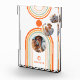 Monogram Name Boho Arch Multi Photo Trendy Girly Mid Century Photo Blocks features a photo collage of three of your favourite photos on a bohemian arch in orange and blue on a white background with your personalised name and monogram in a modern orange script. Personalise by editing the text in the text boxes provided and adding your photos to the template. Perfect for gift for birthday, Christmas, Mother's Day, sister, best friend and more. PHOTO TIP: centre your photos before uploading to Zazzle. Designed by ©Evco Studio www.zazzle.com/store/evcostudio