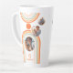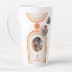 Monogram Name Boho Arch Multi Photo Trendy Girly Mid Century Latte Mug features a photo collage of three of your favourite photos on a bohemian arch in orange and blue on a white background with your personalised name and monogram in a modern orange script. Personalise by editing the text in the text boxes provided and adding your photos to the template. Perfect for gift for birthday, Christmas, Mother's Day, sister, best friend and more. PHOTO TIP: centre your photos before uploading to Zazzle. Designed by ©Evco Studio www.zazzle.com/store/evcostudio