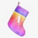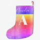 Make this holiday season merry and bright with this bright personalised Christmas stocking design. This monogram and name design has a faded check pattern in bright sunset colours, yellow, orange, pink and lilac. It has the name "Amelia" in stylish script and the monogram “A” in modern typography. You can easily add your name and initial, using the personalise this text box. to customise further check out the design editing tool. Happy Holidays! If you need help with personalisation, matching products, or for a custom design contact me via zazzle chat or email: ursuladawnmoon@gmail.com