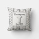 This monogram pillow is a great way to add an unexpected accent to your home or create a special keepsake for a wedding or housewarming. A silver grey geometric pattern appears against a white background on both the front and back of this pillow. The letter "T" is featured in a square along with the family name and year. The letter, year, and your name can quickly and easily be personalised.