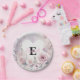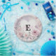 Monogram name floral hearts romantic watercolor paper plate
