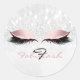 Monogram Name Glitter Pink Eye Lash Girl 16 Silver Classic Round Sticker