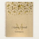 This stylish planner is decorated with dripping faux gold stars on a gold glitter background.