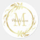 Monogram Name Gold White Christmas Wreath Classic Round Sticker