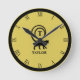 Monogram Name Initial Kitty Cat Lover Gold Black Round Clock