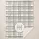 Monogram Name Initial Sage Pink Plaid Pattern Sherpa Blanket