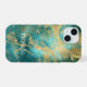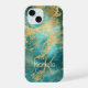 Monogram Name Initial Turquoise Green Gold Marble iPhone 15 Case