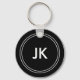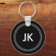 Monogram keychains in black and white designed with monogram name initials and geometric circles you can personalise right on our website. Created as a party favour for weddings, parties or social events and is a budget ready design you can use to purchase in bulk.
