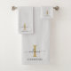 Monogram Name Minimalist Gold Grey Script Bath Towel Set