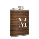 Monogram Name Modern Rustic Wood White Classy Hip Flask