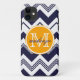 Monogram Name Navy Blue White Chevron Pattern Case-Mate iPhone Case