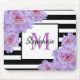 Monogram Name Pink Flower Black Stripe Purple Mouse Pad
