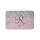 Monogram Name Pink Grey Silver Stars Trendy Bath Mat