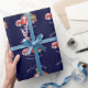 This cute wrapping paper features your monogram initial and name with a rustic red truck filled with a Christmas tree and presents, and "Merry Christmas" in modern typography on a navy blue background. This festive Christmas wrapping paper is perfect for gifts from Santa this Christmas holiday season! Can be easily personalised with your name and monogram.