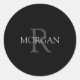 Monogram & Name, Simple Classic Design In Grey Tex Round Sticker
