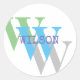 Add a stylish personal touch with this custom monogram name sticker in a modern color palette of grey, green, blue, and white. Whether you're labeling party favors, sealing envelopes, personalizing school supplies, or branding gifts, this classic round sticker is a versatile choice. Customize with your initial and name for a clean, polished look — perfect for weddings, birthdays, businesses, or everyday use. Easy to be personalized. name personal Font style, size and colors can be changed. Matching items available.