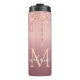 Monogram Name Text Rose Gold Blush Glitter Thermal Tumbler