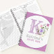 Design features the recipient's Monogram & Name with Flowers either side in a water colour pastel style. Initial is the letter K.