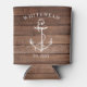 Monogram Nautical Anchor Brown Wood Can Cooler