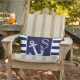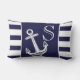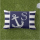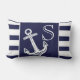 Monogram Nautical Anchor Navy Blue White stripes Lumbar Cushion