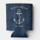 Monogram Nautical Anchor Navy Blue Wood Can Cooler
