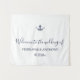 The clean typography and balanced spacing give the tapestry a polished, cohesive look suited for beach weddings, coastal venues, yacht club receptions, or navy-themed celebrations.