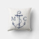 Nautical style pillow featuring a navy anchor with 2 spots for initials.