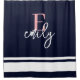 Monogram Nautical Stripes Navy Pink White Shower Curtain
