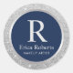 Monogram Navy Blue Elegant Silver Glitter Classic Round Sticker