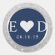 Monogram Navy Blue Elegant Silver Glitter Wedding Classic Round Sticker