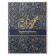Monogram Navy Blue Gold Leaf Newlyweds Wedding Notebook
