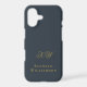 Elegant monogrammed neutral stylish simple premium look iPhone case, customisable personalizable with monogram initial letters and the name, appropriate for a gentleman. Refined monochrome classy navy blue background, elegant gold calligraphy script handwriting for the initials, and gold serif typography for the name. Beautiful minimalist minimal and timeless, for you or as a thoughtful custom useful tech electronic accessory gift for him. A best friend, a coworker, a boss, or someone from the family, a dad, a brother, even a grandfather will be very happy to receive this cellphone protection case. For personal or professional business use. Very affordable, a custom gift under 35 dollars for him, suitable for many occasions and celebrations, like birthday, Father’s Day Christmas, graduation, retirement, anniversaries or just to make him a little surprise, without any special occasion. Modern lifestyle customised men gift.