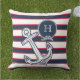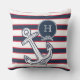 Monogram Navy Blue Red White Nautical Stripes Cushion