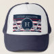 Monogram Navy Blue Red White Nautical Stripes Trucker Hat