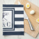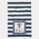Monogram Navy Blue Stripe Seahorse Nautical Tea Towel