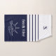 Monogram Navy Blue Stripes Nautical Beach House Bath Towel Set