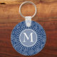Monogram Navy Blue White Spirals - Personalised Key Ring