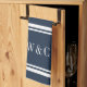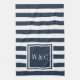 Monogram Navy Blue White Stripe Personalised Tea Towel