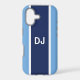 Now your phone can look really stylish with this tough case decorated with a bold navy stripe on a blue background and your custom initials.