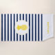Get ready for the beach with this personalised beach towel featuring a navy stripe pattern with yellow pineapple icon.