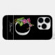 Monogram O silver custom name pink orchid black Case-Mate iPhone 14 Pro Case. Pink orchods around silvery letter O. The colour combination on black give an sophisticated feel. Easy to Customise with your name, leave the swashes in front and back for a more curvy look, or delete. If your name start with an O, this is a phone case for you. If you want this design on other matching items, you can transfer it with the design tool.