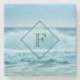 Monogram Ocean Wave Crashing on Beach Coastal Stone Coaster