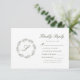 This wedding design features an elegant script monogram initial framed by a line art wreath of olive green foliage on a white background. The words "Kindly Reply" appear above the customisable olive green text, which includes room for an online RSVP option with website URL.